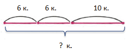 В двух коробках было по 6 карандашей в каждой, а в третьей коробке ещё 10 карандашей. Сколько всего карандашей в этих трёх коробках?