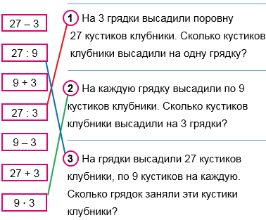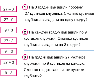 Устно реши задачи. Соедини линией кружок с номером задачи и карточку с выражением для её решения.