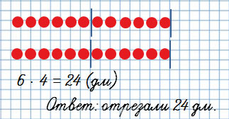 Таня отрезала от ленты 4 раза по 6 дм. Сколько всего дециметров ленты отрезала Таня?