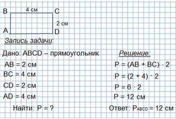 Начерти прямоугольник ABCD со сторонами 2 см и 4 см. Найти его периметр.