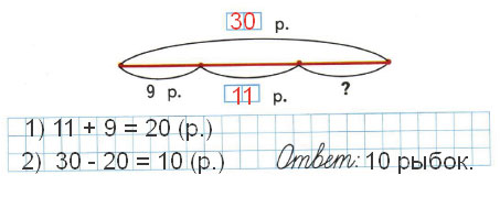 В трёх аквариумах 30 рыбок. В первом аквариуме 9 рыбок, а во втором — 11. Сколько рыбок в третьем аквариуме?