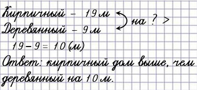 м, а деревянного 9 м. На сколько метров кирпичный дом выше, чем деревянный?