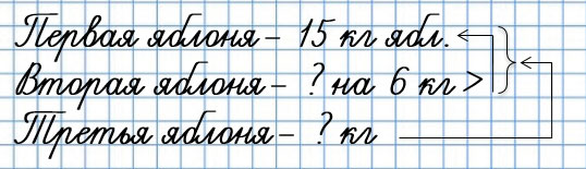 13. С первой яблони собрали 15 кг яблок, со второй - на 6 кг больше, чем с первой, а с третьей - столько килограммов яблок, сколько с первой и второй яблонь вместе. Сколько килограммов яблок собрали с третьей яблони?
