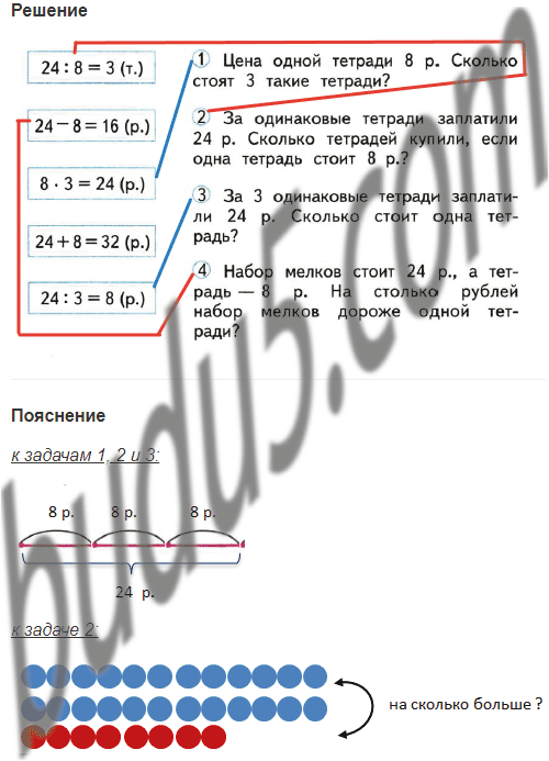 1. Цена одной тетради 8 р. Сколько стоят 3 такие тетради? |