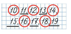 2. Запиши по порядку числа от 10 до 19. Обведи кружками чётные числа, подчеркни нечётные.