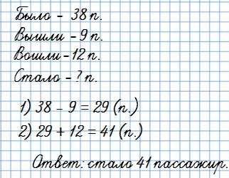 24. В трамвае ехали 38 пассажиров. На остановке вышли 9 пассажиров, а вошли 12 пассажиров. Сколько ...?