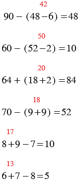 Если есть необходимость, то при решении примеров в два действия, можно записывать промежуточные ответы при выполнении первого действия сверху карандашом над этим действием (у нас промежуточные ответы выделены красным цветом).