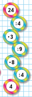 6 • 4 = 24 4 • 8 = 32 4 • 4 = 16 4 • 9 - 4 = 32