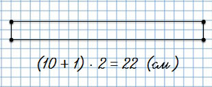 Начерти прямоугольник со сторонами 1 см и 10 см. Найди его периметр.