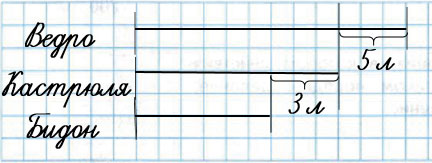 8. Воды в кастрюле на 3 л больше, чем в бидоне, и на 5 л меньше, чем в ведре. Где воды больше всего?