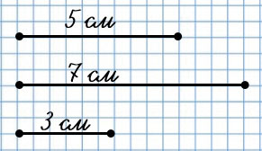 5. Начерти 3 отрезка: один длиной 5 см, второй - на 2 см длиннее первого, а третий - в 2 раза длиннее первого.