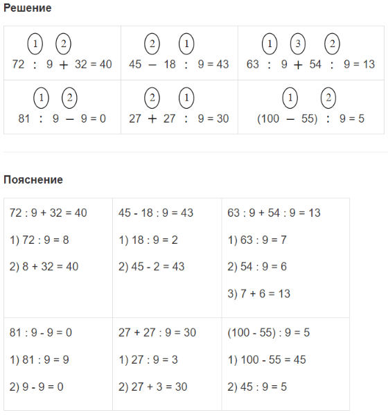 72 : 9 + 32 45 - 18 : 9 63 : 9 + 54 : 9