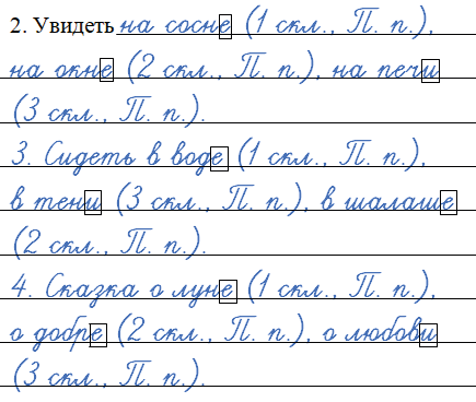 1. Подойти к (вода, дом, степь). 2. Увидеть на (сосна, окно, печь). 3. Сидеть в (вода, тень, шалаш). 4. Сказка о (луна, добро, любовь).