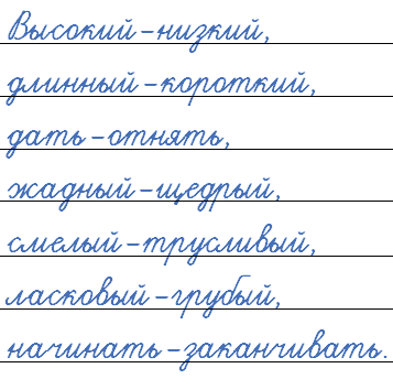 Подберите к каждому слову из левого столбика слово с противоположным значением (антоним) из правого столбика. Запишите слова парами.