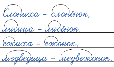 Найдите в тексте названия животных и их детёнышей. Запишите их парами по образцу.