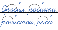 Выписанные однокоренные слова имеют общую (одинаковую) часть - корень (-рос-), а также общее смысловое ядро (все эти слова называют утренние осадки в виде капелек).