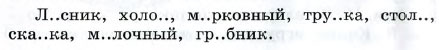 Распределите слова в четыре группы по орфограммам. Запишите.