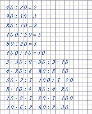 3 • 30 : 9 = 10 4 • 20 : 8 = 10 50 • 2 : 5 = 20 |