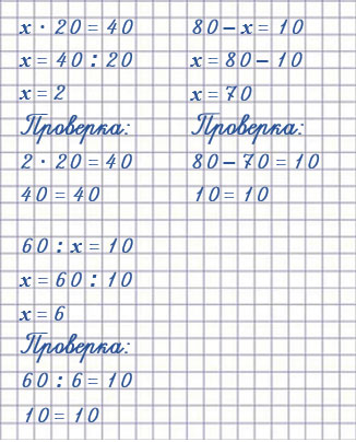 х • 20 = 40 х = 40 : 20 х = 2 Проверка: 2 • 20 = 40 40 = 40 |