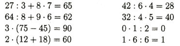 | 27 : 3 + 8 • 7 | 42 : 6 • 4 |