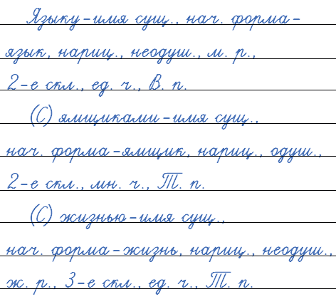 Выберите из выделенных в тексте слов по два существительных разного склонения. Выпишите их и сделайте анализ по образцу.