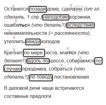 Останется позади дома, крепнет по мере роста, мчит(?)ся вдоль по шоссе, собираемся по случаю праздника, сдела..м наподобие корзинки, ошибат(?)ся вследствие (не)внимательности, собрат(?)ся по поводу постановления, утеплить ввиду холодов.