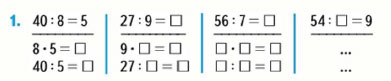 Если 96 : 4 = 24, то 4 • 24 = и 96 : 24 =