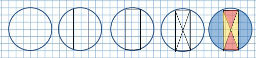 2) внутри окружности с помощью линейки чертим прямоугольник: