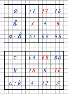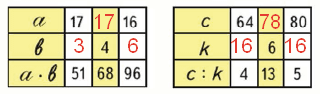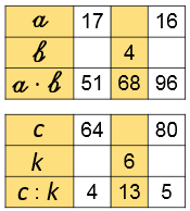В первой таблице нам неизвестен какой-то из двух множителей. Чтобы найти неизвестный множитель, нужно произведение разделить на известный множитель.