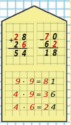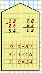 1) Помни, что при сложении и вычитании двузначных чисел в столбик, нужно единицы записывать под единицами, а десятки под десятками.