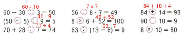 Если тебе нужно выполнить несколько арифметических действий (сложение, вычитание, умножение и деление) и действие со скобками, то сначала выполняют действия в скобках, затем умножение и деление по порядку слева направо, а затем сложение и вычитание по порядку слева направо.