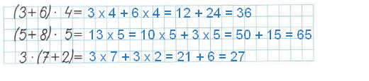 Чтобы умножить сумму на число, можно вычислить сумму и умножить её на число или умножить на число каждое слагаемое и полученные результаты сложить.
