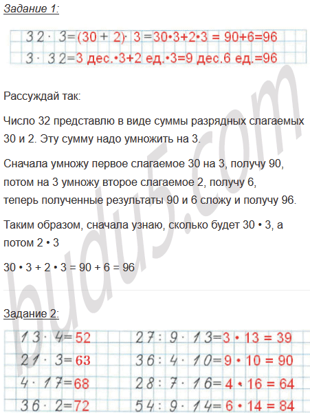 Число 32 представлю в виде суммы разрядных слагаемых 30 и 2. Эту сумму надо умножить на 3.