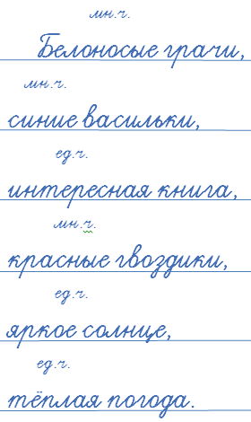 Белоносые (мн. ч.) грачи, синие (мн. ч.) васильки,