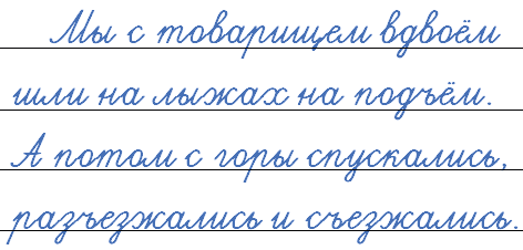 Мы с товарищем вдвоём шли на лыжах на под..ём. А потом с горы спускались, раз..езжались и с..езжались.