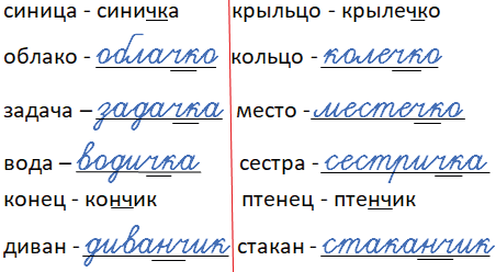 Прочитайте. Образуйте от данных слов однокоренные слова с уменьшительно-ласкательным значением. Запишите. Проверьте себя.