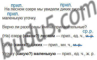 (На) озере (каком?) лесном — прил., ед. ч., ср. р.