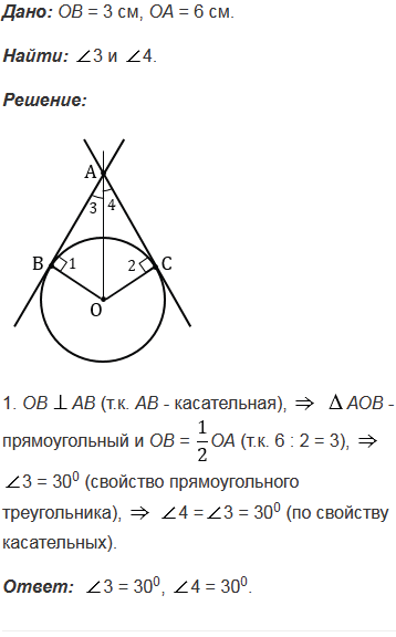 На рисунке 162 ОВ = 3 см, ОА = 6 см. Найдите 3 и  4.