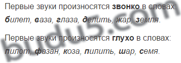 2. Сравни первые звуки в каждой паре слов. Какие звуки произносятся звонко, какие - глухо, с шумом?