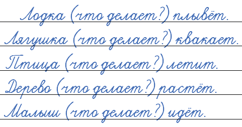 К какой из них можно поставить вопросы кто? и что?, а к какой - что делает? Соедините слова двух групп и запишите предложения по образцу.