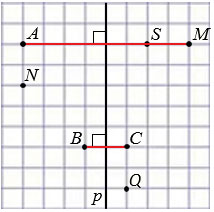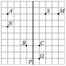 б) Прямая р проходит через середину отрезка ВС и перпендикулярна к нему, поэтому точке В относительно прямой р симметрична точка С.