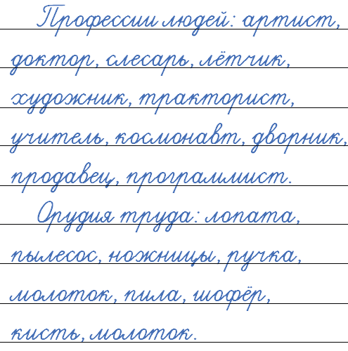 Распределите существительные по группам: профессии людей, орудия труда (инструменты). Запишите.