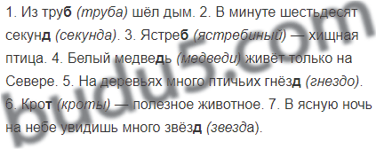 1. Из тру.. шёл дым. 2. В минуте шестьдесят секун.. . 3. Ястре.. — хищная птица. 4. Белый медве..ь живёт только на Севере. 5. На деревьях много птичьих гнёз.. . 6. Кро.. — полезное животное. 7. В ясную ночь на небе увидишь много звёз.. .