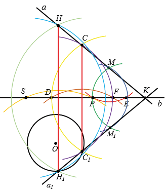 и данной окружности и прямая b ось симметрии отрезка НН1.
