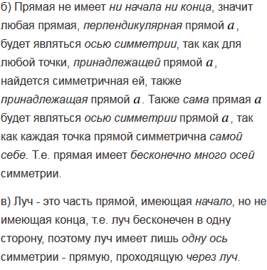 Сколько осей симметрии имеет: а) отрезок; б) прямая; в) луч?
