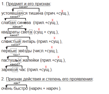 Распределите словосочетания на группы: называющие предмет (явление) и его признак; называющие признак действия и степень его проявления; обозначающие действия и предметы (явления), по отношению к которым осуществляется действие; действия и обстоятельства, характеризующие их. Графически обозначьте связь слов в словосочетаниях; определите, какими частями речи являются главное и зависимое слово. С помощью каких средств осуществляется связь слов в этих словосочетаниях?