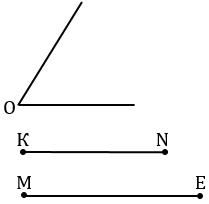 а) Строим два отрезка КN и МЕ, а также угол О.