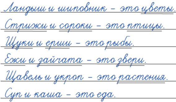 Допишите предложения. Подчеркните имена существительные, которые стоят во множественном числе.