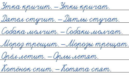 Образец. Утка кричит. — Утки кричат.