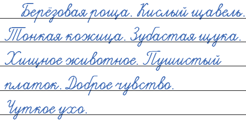 Берёзовая рощ.. . Кислый щ..вель. Тонкая кожица. Зубастая щ..ка. Хищное ж..вотное. Пуш..стый платок. Доброе ч..вство. Ч..ткое ухо.